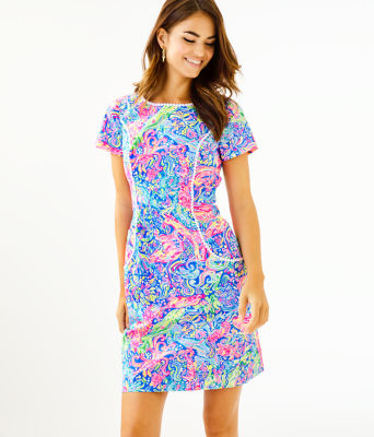 The Coralynn is a quintessential shift dress with perfectly placed piping, signature Lilly lace trim, and pocket details. Add a pop of color to your closet with this straight fit dress that is perfect for any occasion from day to night.